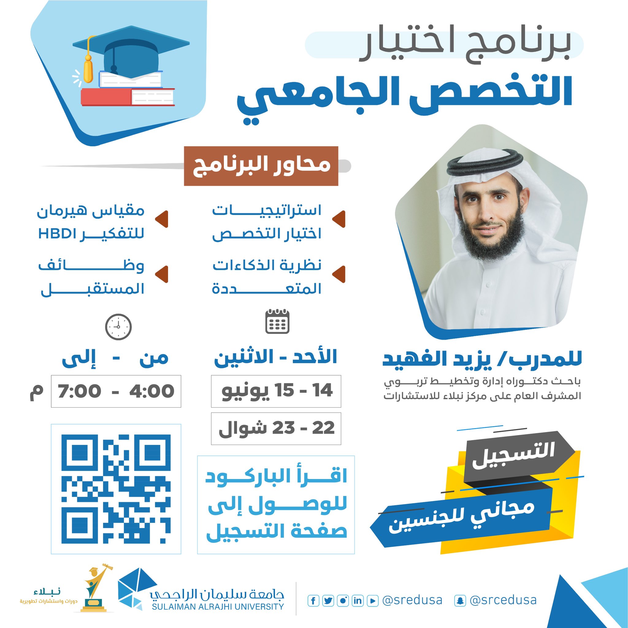 يجب على الشخص اختيار هدفه الخاص وليس ما يريده الآخرون له فعلى الشخص أن يلحق ميوله وما. دورة اختيار التخصص الجامعي قدمها المدرب يزيد الفهيد باحث دكتوراه إدارة وتخطيط تربوي خبرة في تقديم البرنامج. لقد قمنا بجمع كافة الخطوات التي باتباعها تضمن اختيار التخصص الجامعي الأنسب والأفضل لك وهم كما يلي. اختيار التخصص الجامعي المناسب بعد الانتهاء من مرحلة الدراسة الثانوي ة يعتبر من القرارات الهام ة والصعبة.