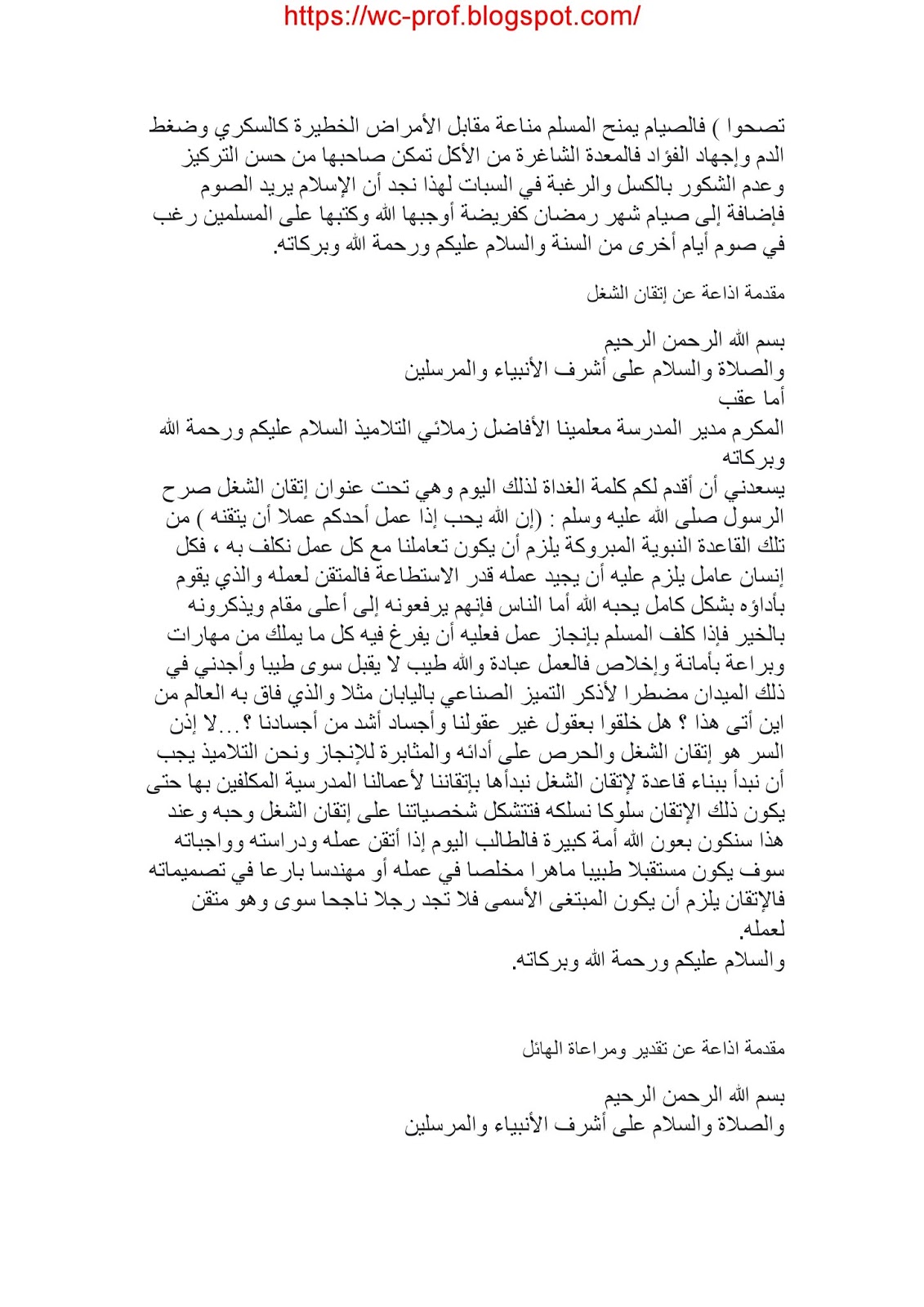 أسعد الله صباحكم بكل خير. إذاعة مدرسية للمرحلة الإبتدائية 2019 2020 بسم الله الرحمن الرحيم الحمدلله رب العالمين والصلاة والسلام على نبيه الكريم ورسوله الأمين. خاتمة اذاعة صلاتي حياتي. فقرة الحديث الشريف.