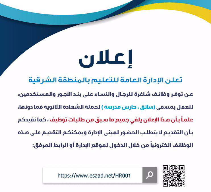 وظائف التجمع الصحي الأول 13 وظيفة ادارية وصحية وفنية لحملة المتوسطة فما فوق بالمنطقة الشرقية.