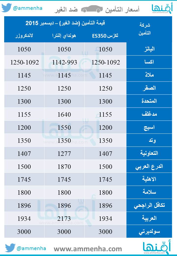 أشارت عددا من التقارير إلى ارتفاع أسعار وثائق التأمين على المركبات ضد الغير بنسبة عالية أكثر من 100 ففي السابق كانت أسعار التأمين ضد الغير حوالي 500 ريال ثم أصبحت الان بعض منتجات تأمين المركبات ضد الغير تصل إلى 1800 ريال سعودي. سعر التأمين ضد الغير يبلغ 1245 ريال سعودي سعر التأمين شامل يبلغ 8147 ريال سعودي. أحصل على خدمات حصرية متكاملة تضمن لك راحة البال عند حصولك على التأمين. تأمين شامل على المركبات.