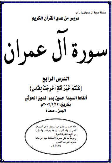 ك نت م خ ي ر أ م ة أ خ ر ج ت ل لن اس ت أ م ر ون ب ال م ع ر وف و ت ن ه و ن ع ن ال م نك ر و ت ؤ م ن ون ب الل ه و ل و آم ن أ ه ل ال ك ت اب ل ك ان خ ي ر ا ل ه م م ن ه م ال م ؤ م ن ون. كنتم خير أمة أخرجت للناس تأمرون بالمعروف وتنهون عن المنكر وتؤمنون بالله. ك ن ت م خ ي ر أ م ة أ خ ر ج ت ل لن اس منبر العقيدة والتوحيد لتحميل حلقة الرقية الشرعية للشيخ أبو البراء اضغط هنا.