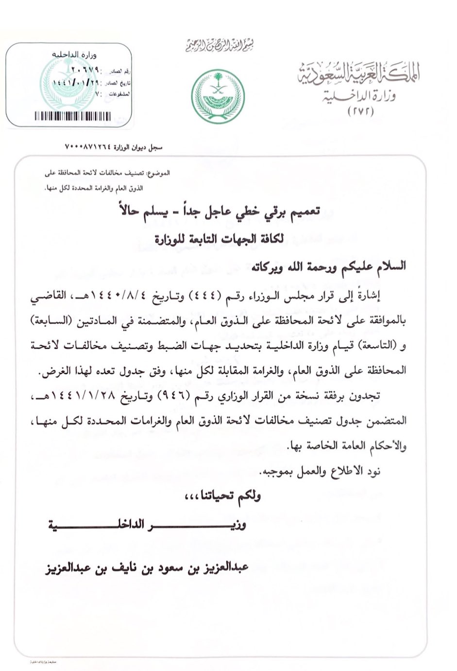 دعت النيابة العامة أمس على حسابها في تويتر المواطنين والمقيمين ليكونوا واعين بأحكام لائحة المحافظة على الذوق العام وعقوباتها الصادرة بقرار مجلس الوزراء رقم ٤٤٤ وتاريخ ٠٤ ٠٨ ١٤٤٠هـ ونشرت النيابة. لائحة المحافظة على الذوق العام. الذوق العام في السعودية هو مجموعة الآداب السلوكية والاجتماعية التي تنطوي تحت إطار اللباقة التي يفرضها المكان والزمان وعام يته ومنبعها الثقافة الإنسانية والسلوكيات المتعارف عليها وتحكمها لائحة تنظيمية بدأ. مجموعة السلوكيات والآداب التي تعبر عن قيم المجتمع ومبادئه وهويته بحسب الأسس والمقومات المنصوص عليها في النظام الأساسي للحكم.
