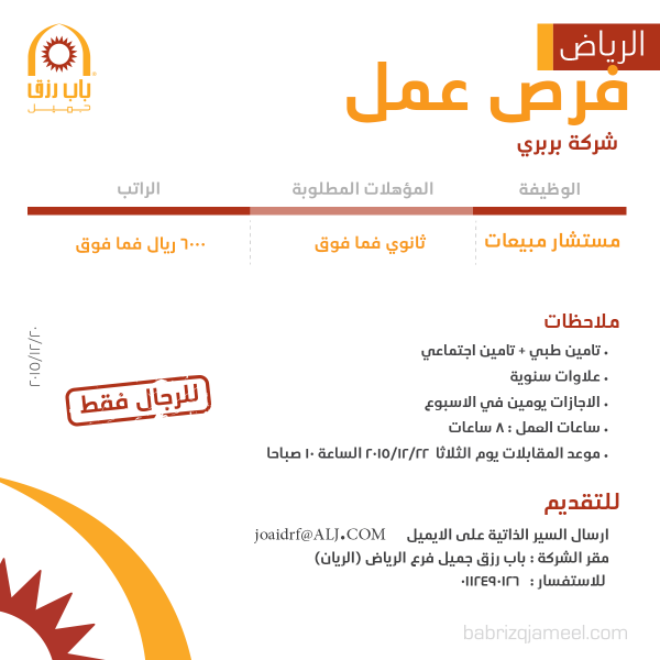 الشركة الخليجية للترفيه تعلن عن توفر عدد 12 وظيفة نسائية شاغرة لحملة الثانوية العامة فما فوق للعمل بمدينة الرياض.